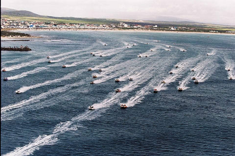 The 'World's Toughest Inflatable Boat Challenge' starts every year on 28 December at Plettenberg Bay, South Africa. It is a fast-paced, action-packed water sports event with over 40 inflatable boats battling it out in the waves.